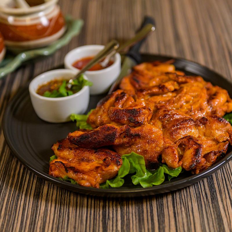 Marinated chicken and easily grilled to perfection. Served with tangy dipping sauce and sweet Thai sauce.